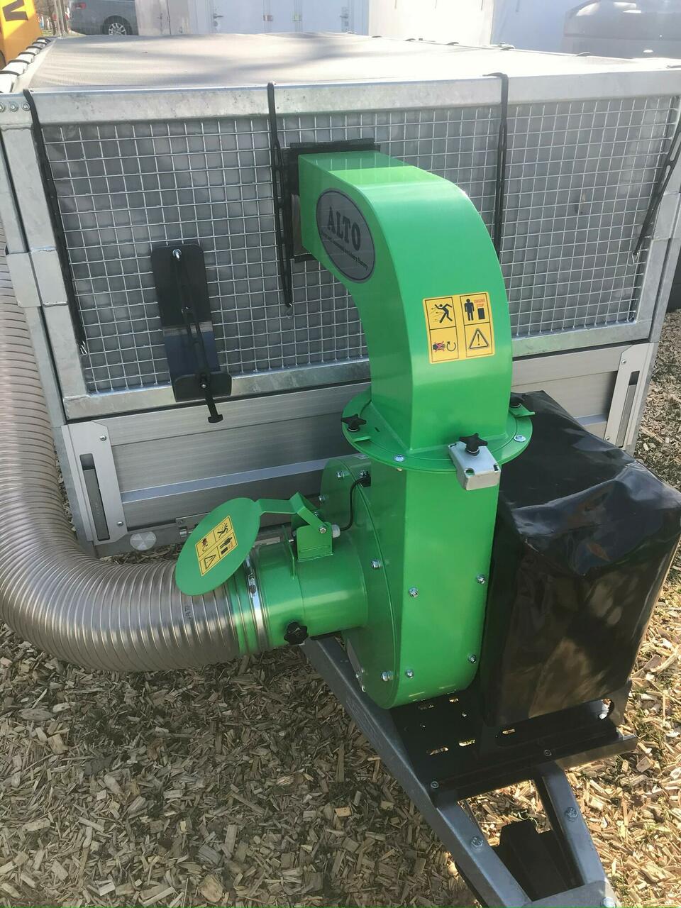 The leaf vacuum on the trailer drawbar and the hand nozzle with the suction