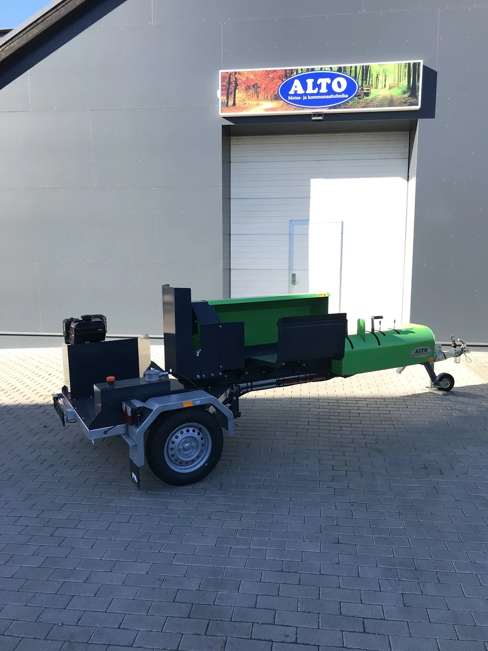 is a hydraulic log splitter for Nordic wood. The ALTO HH-110 is the right machine for making firewood quickly and easily! It is possible to install a pair of supports on the machine, which are located on both sides of the machine. The supports facilitate splitting large logs. The height of the splitting blade can be adjusted hydraulically. There are two different types of ALTO HH - 110 road models that we produce. 1. Gasoline engine + street-legal rear-wheel drive. 2. Electric engine + street-legal rear-wheel drive. The blade of the wood splitter is made of HARDOX steel and its height is adjustable. The powerful cylinder with a compression force of 8 tons ensures good productivity. Thanks to a special valve, the log pusher can be left standing and set in motion where it suits you. There is no need to spend time adjusting the machine if there are logs of different lengths. Two speeds can be used for splitting, depending on the log diameter.