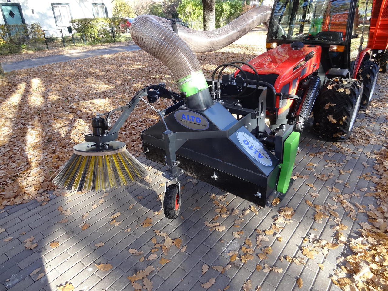 Die Saugöffnung ist für die Verwendung mit einem Laubsauger ausgelegt. Bei gemeinsamer Verwendung bieten sie die Möglichkeit, Rasenflächen, Straßen, Wege und Plätze schnell und effizient von Laub und losem Gras zu befreien. Die Saugöffnung wird an der Aufhängung vor dem Traktor befestigt und über einen Schlauch mit dem Sauger an der Kupplung oder der Anhängerdeichsel an der Rückseite des Traktors verbunden. Die Saugöffnung ist mit einer hydraulischen rotierenden Bürste ausgestattet, die auch am Boden haftendes Laub sammelt. Die Bürste wird von einem Hydraulikmotor angetrieben. Die Saugöffnung/Bürste an der Kupplungsdeichsel verfügt über ein bewegliches Nachlaufsystem. Für eine effektive Reinigung verschiedener Flächen ist es notwendig, die Höhe der Bürste vom Boden aus einstellen zu können. Dazu bietet unsere Saugöffnung/Bürste die Möglichkeit, die Stützräder nach oben und unten, die Fußrasten rechts und links am Gehäuse und die vordere Schürze zu verstellen. Ein geringer Wartungsaufwand erleichtert die Instandhaltung dieses Geräts. Seitenbürste mit einer Arbeitsbreite von 600 mm. Die Drehzahl der Saugbürste ist einstellbar. Die Seitenbürste an der Saugöffnung kann separat ein- und ausgeschaltet und ihre Drehzahl eingestellt werden.