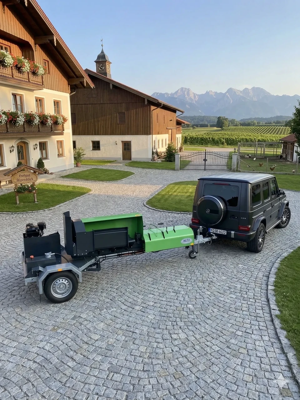 is a hydraulic log splitter for Nordic wood. The ALTO HH-110 is the right machine for making firewood quickly and easily! It is possible to install a pair of supports on the machine, which are located on both sides of the machine. The supports facilitate splitting large logs. The height of the splitting blade can be adjusted hydraulically. There are two different types of ALTO HH - 110 road models that we produce. 1. Gasoline engine + street-legal rear-wheel drive. 2. Electric engine + street-legal rear-wheel drive. The blade of the wood splitter is made of HARDOX steel and its height is adjustable. The powerful cylinder with a compression force of 8 tons ensures good productivity. Thanks to a special valve, the log pusher can be left standing and set in motion where it suits you. There is no need to spend time adjusting the machine if there are logs of different lengths. Two speeds can be used for splitting, depending on the log diameter.